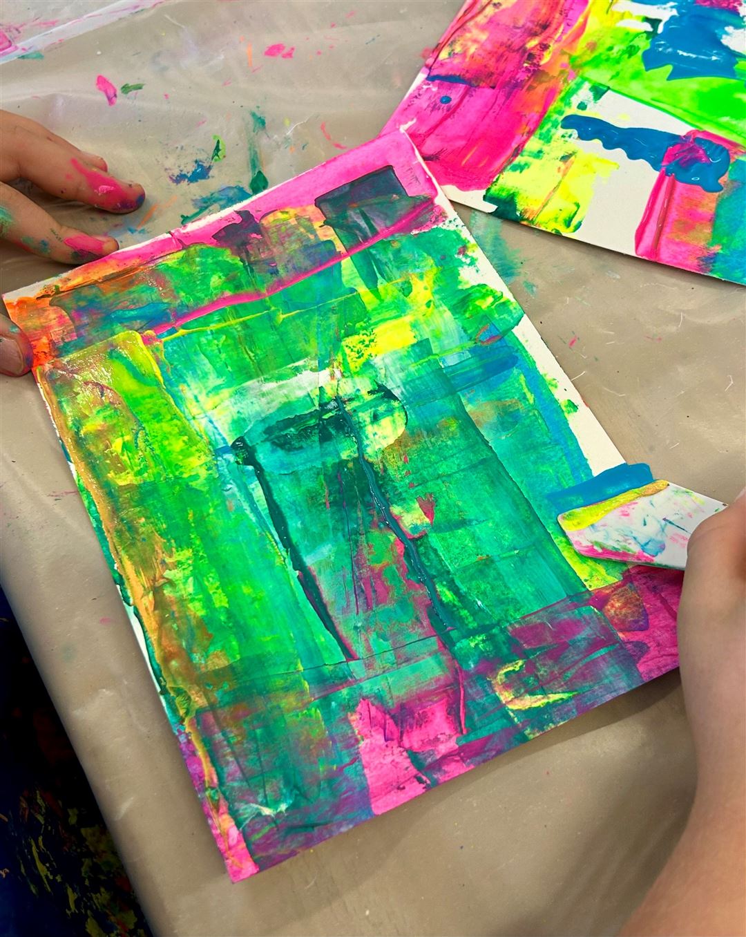 Mit der Spachteltechnik zauberst du an diesem Tag viele bunte und abstrakte Bilder. Leuchtende Künstlerfarben und ganz viele verschiedene Spachtel können ausprobiert und die eigene Lieblingstechnik entwickelt werden. Du kannst dich aus einem großen Fundus an Farben und Spachteln bedienen
