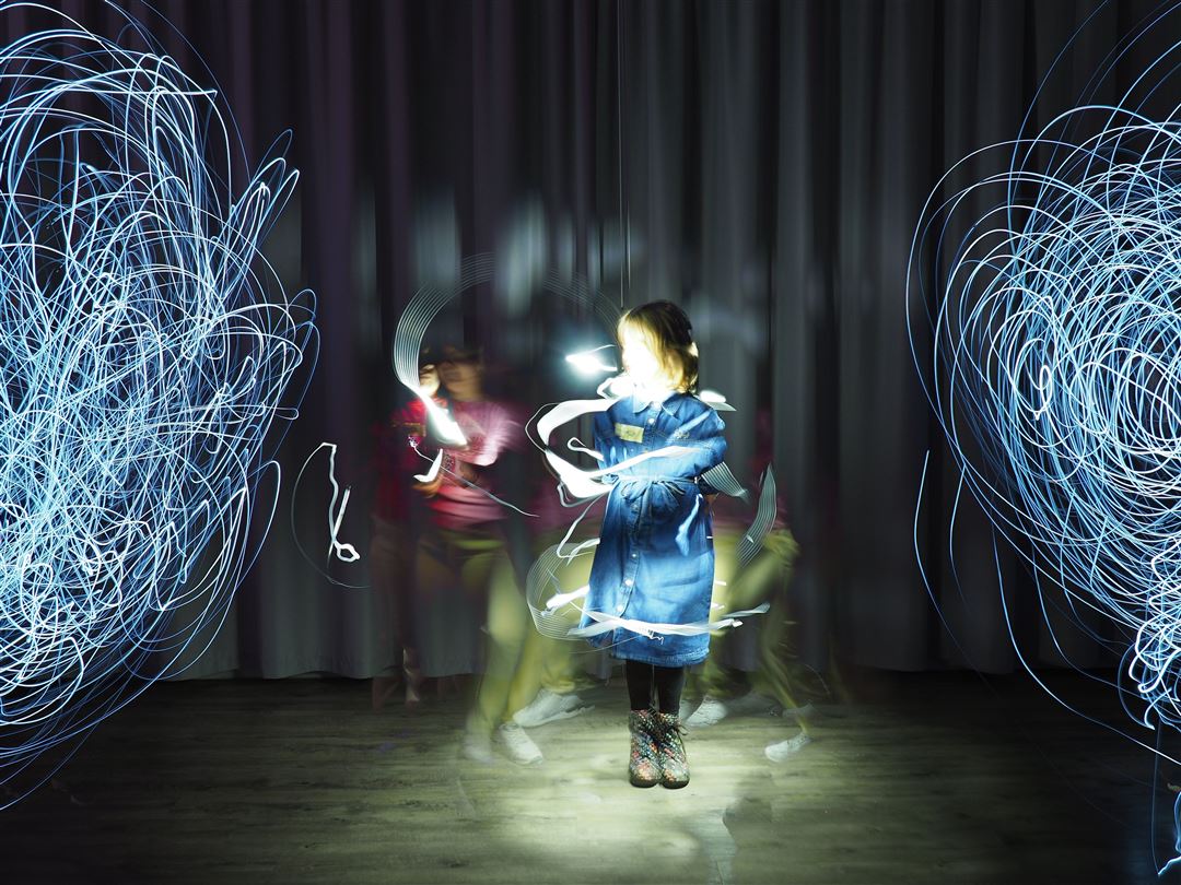 Lichtgraffiti – auch Lichtmalerei genannt – ist Licht, das durch Langzeitbelichtung von der Fotokamera aufgezeichnet und sichtbar gemacht wird. Für euer Motiv könnt ihr euch mit verschiedenen Lichtquellen, zum Beispiel Taschenlampen und Lichtschwertern im dunklen Raum bewegen. Das Ergebnis wirkt wie ein in die Luft gemaltes Graffiti. Aus Schläuchen und Lichterketten bauen wir unsere eigenen Leuchtmittel und bringen gemeinsam Licht ins Dunkel!