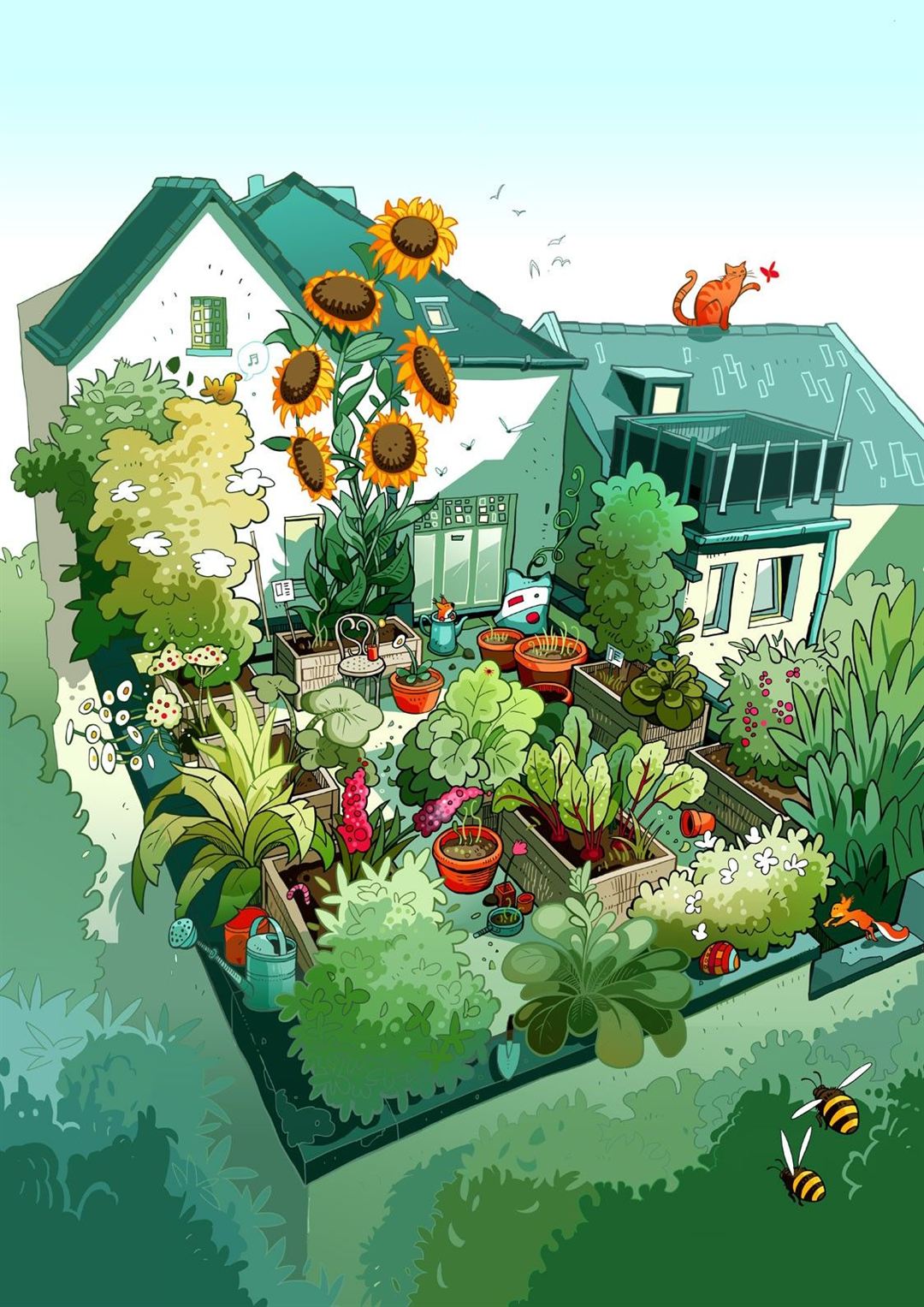 Auf der Terrasse der Kunstwerkstatt Turmstraße wird der Färbergarten neu bepflanzt. (K-26S-9050)